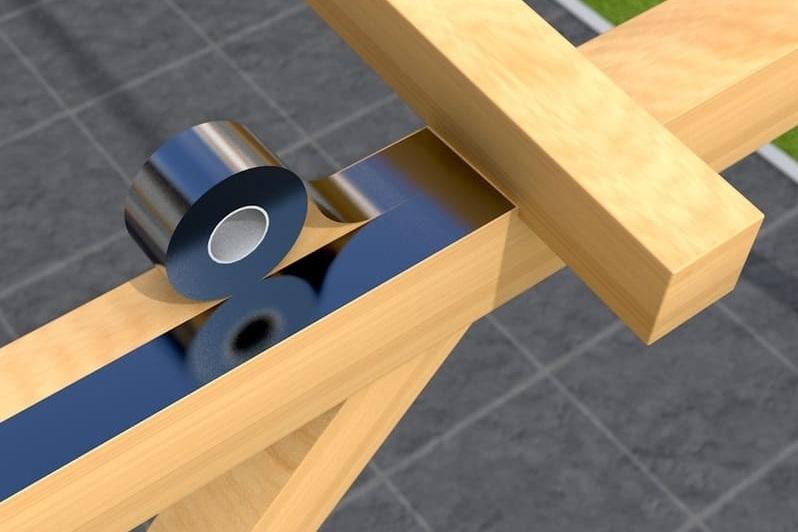 Aluminium-Klebeband hellt die meist dunkle Holzunterkonstruktion auf. Dadurch nimmt die Konstruktion weniger Wärme auf und verhindert einen gefährlichen Hitzestau unter den Lichtplatten.