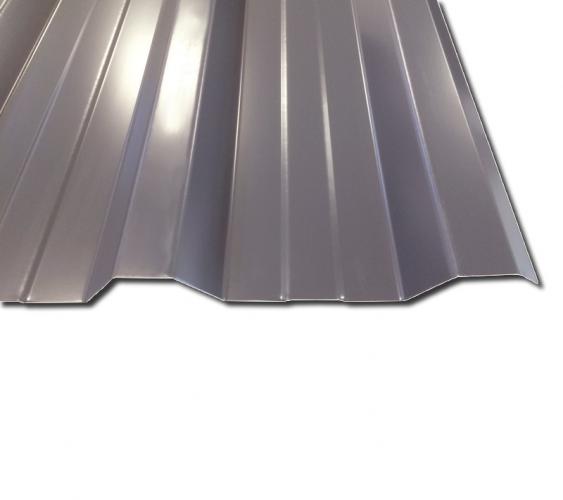 Dieses Trapezblech wir in RAL9007 Graualuminium geliefert. Leider lässt sich die Farbe hier im Web nicht so gut darstellen. Aber sie sieht wirklich toll aus!